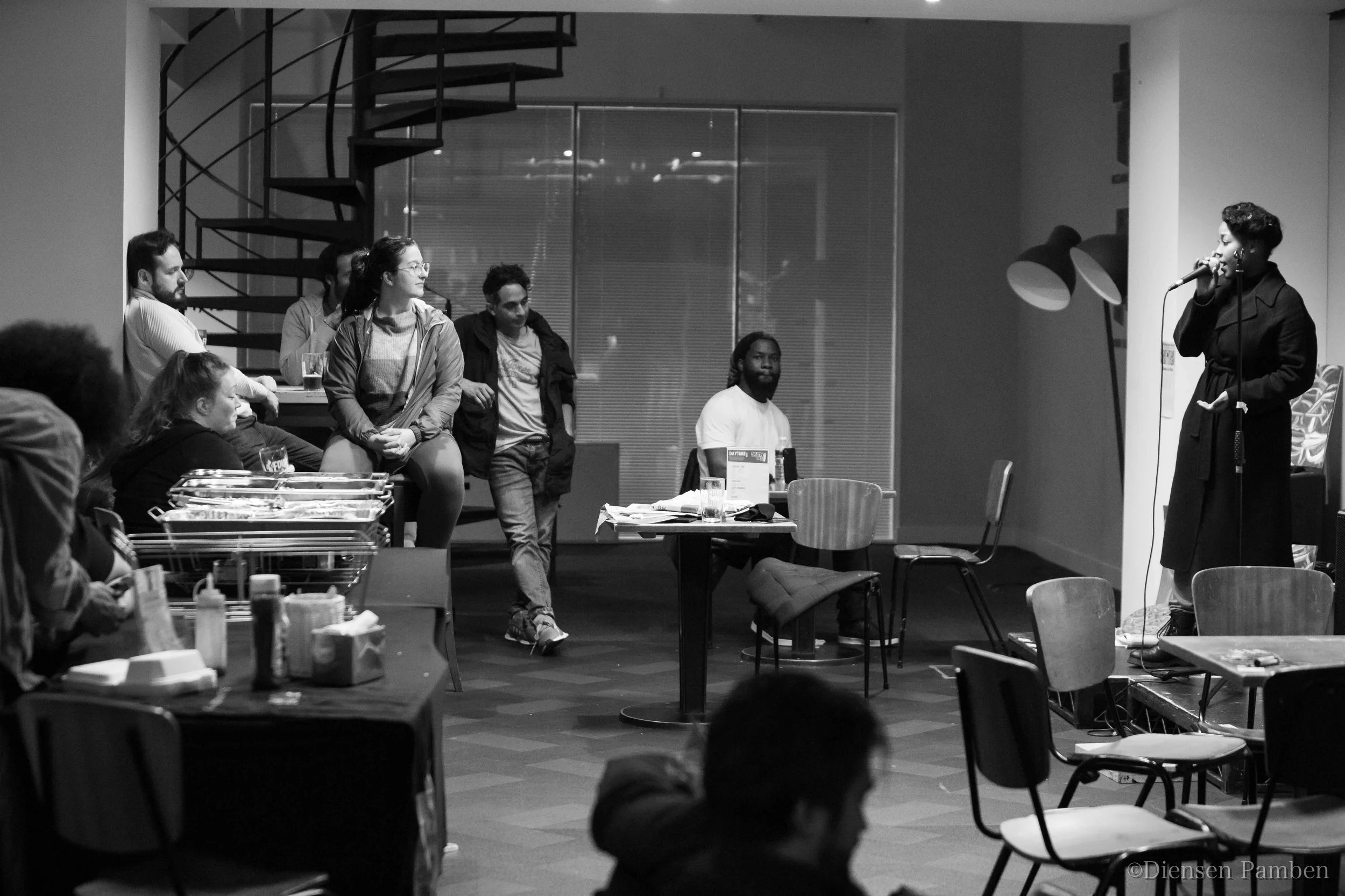 The SpeakEasy programme aligns multiple Black & Global Majority voices in unison to celebrate, community joy, empowerment, and creativity through - SpeakEasy Po’JaM a bi-monthly music and spoken word open mic SpeakEasy Page-to-Stage writing workshops, SpeakEasy Co’LaB social and creative drop-in, and SpeakEasy Co’LaB LiVE a monthly one-hour open mic, all which nurture and amplify Black and Global Majority voices. SpeakEasy Saturdays bring all the strands together in a full-day in-person programme at Theatre Deli, including Page-to-Stage, Co’LaB, and our open-mic Co’LaB LiVE.